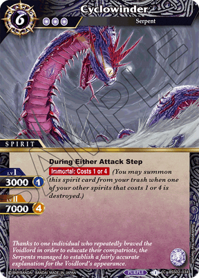 [Immortal: Costs 1 or 4](You may summon this spirit card from your trash when one of your other spirits that costs 1 or 4 is destroyed.)