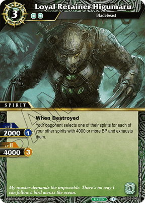 Your opponent selects one of their spirits for each of your other spirits with 4000 or more BP and exhausts them.