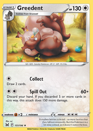 SWSH Lost Origin 151-196 Greedent