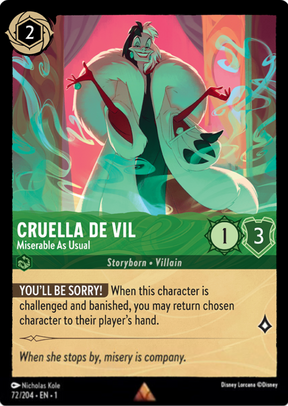 Disney Lorcana The First Chapter 072/204 CRUELLA DE VIL Miserable As Usual Foil