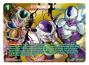 [Ultimate] [Activate : Battle] If your Leader Card is green or a 《Frieza Clan》 card and your opponent has 3 or more energy : Your opponent discards 2 cards from their hand. Choose up to 1 of your opponent's Battle Cards with an energy cost less than or equal to the number of Unison Cards and 《Frieza Clan》 cards in all Leader Areas, Energy Areas, Battle Areas, Unison Areas, Drop Areas, and Warps, KO it, then remove this card from the game.
