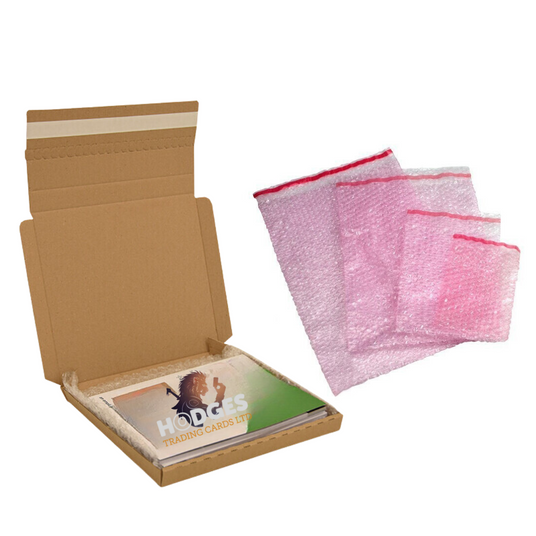 All Single Card Orders Are recorded and quality checked before packing, Cards are then placed into a soft sleeves and or Top loaders depending on Value of the Cards, None top loaded Cards are placed between Ridged Card Dividers securely to prevent any bending, then placed into an anti-static bubble bag. This Packaging is limited to 15 cards only.