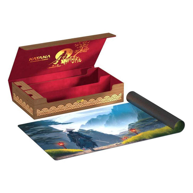 Immerse yourself in the world of ancient Japan with the first installment of our Katana series, The Shogun's Journey! The Samurai's Chest consists of an Omnihive Xenoskin in the style of traditional Japanese wood art and a Play-Mat that takes you on a journey to a cloud-covered mountain village. The Omnihive holds over 1000 standard-size cards (double-sleeved), and the deck box, like the Play-Mat, is limited and exclusive to this bundle.