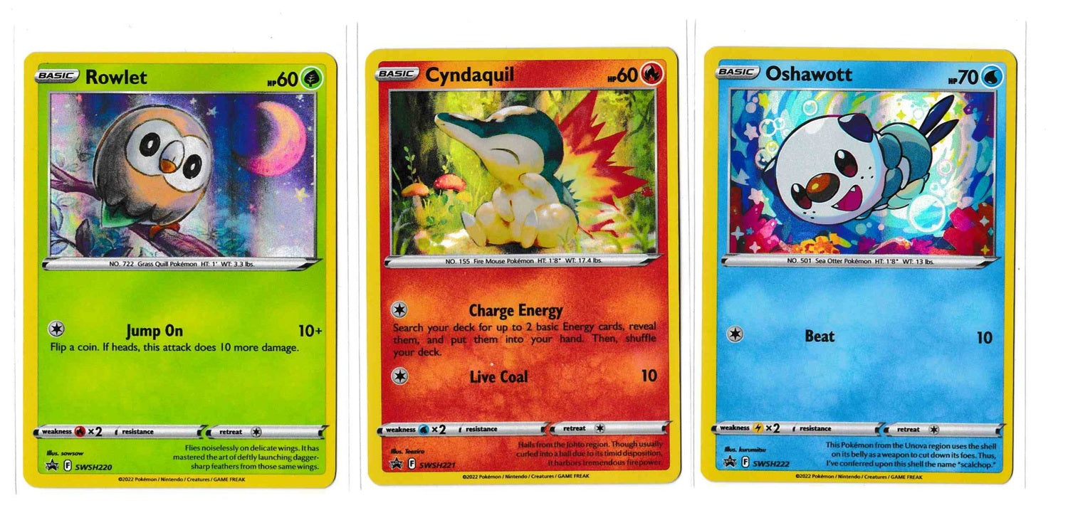 Pokemon - Rowlet Cyndaquil & Oshawott SWSH220/221/222 Holo Black Star Promo